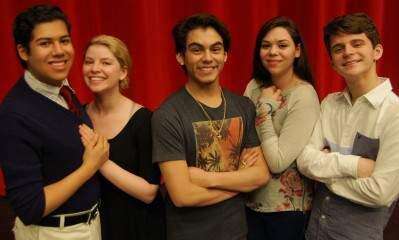 The Lehigh Valley Charter High School for the Arts “Evita” cast, from left: Nico Gonzalez (Juan Peron), Lynsey Jeffery (Eva Peron), Kristopher Sanchez (Che), Deanna Mogianesi (Mistress) and Robert Stinner (Magaldi).