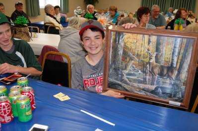 PRESS PHOTO BY SUSAN BRYANTRyan Correll of North Whitehall holds up the artwork of a deer he won April 9 at the Northern Valley Ambulance Corps Ladies Auxiliary spring bazaar. The fundraiser featured more than 120 themed baskets at the corps' Ormrod station.