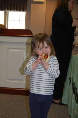 Delicious dogAva Missmer of Orefield takes a bite of the hot dog given her by Jenna Smith, IRA savings specialist with New Tripoli Bank, during Community Banking Day April 15 at the bank's branch along Claussville Road, Orefield.PRESS PHOTO BY SUSAN BRYANT