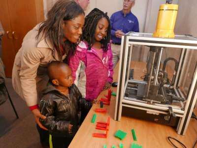 PRESS PHOTO BY LOU WHEELANDAnnie Membo of South Whitehall brought her children Jayden, 3, and Kayla, 8, to see how a 3D printer works during the recent Parkland Community Library's discussion and demonstration. (See additional photos on page A2.)