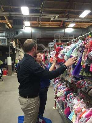 The Kids Clothesline hosted the spring children's consignment event at Ag Hall, Allentown, April 15 to 17. This consignment sale offers thousands of children's items at deeply discounted prices. RIGHT: Amanda and Kris Silfies, of Lehighton, look through girls' clothing available at the sale.PRESS PHOTOS BY SARAH TAKACS