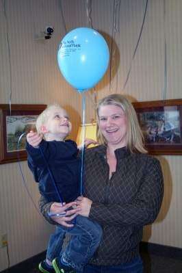 PRESS PHOTO BY DEBRA PALMIERIHunter Vermeulen, 2- , of Orefield, is fascinated by the blue balloon he was given at The Neffs National Bank Community Day celebration. His mom, Erin, also seems to be enjoying the April 29 festivities.