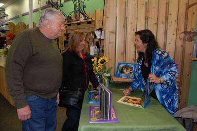 PRESS PHOTOS BY SUSAN BRYANTDeb and Ron Shackett of New Tripoli speak with author Kathy M. Miller of New Ringgold as she autographs one of her Chippy Chipmunk books during the May 1 grand opening of the Wild Bird Center, Fogelsville.