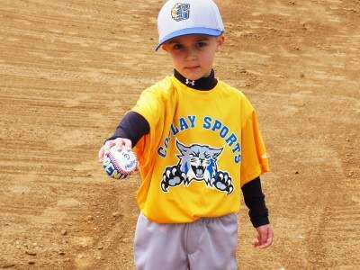 Jason Tomini, of Coplay, prepares to throw out the first pitch Saturday, opening day for Coplay Sports Inc.'s 2016 season. It is tradition for the youngest player in the organization to throw the first ball and the oldest player to catch it.PRESS PHOTO BY AL RECKER