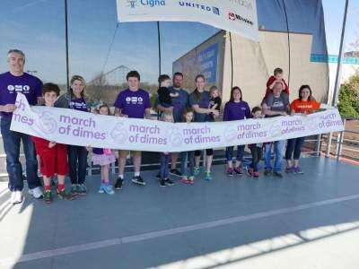 PRESS PHOTOS BY LOU WHEELANDThe 2016 chair families of the March for Babies Walk include: John, Alex, Janet, Anna and Max Kristels; Eve, Kyle, holding Cameron, Ellanna, Melissa Smith holding Payton; Casey, Ava, Matt West holding Griffin join Andrea Kahr, March of Dimes chairperson for a group photo.