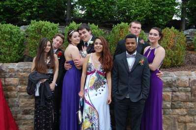 PRESS PHOTOS BY SUSAN BRYANT(front) Malayna Ortiz, Levi Warmkessel, (back) Kailaah Kraftilian, Shane Ruff, Brittany Rowe, Jacob Miller, Trevor Wentz and Kariann Coblentz gather together for a group photo as they wait to enter The Palace, Allentown May 7 for their prom.