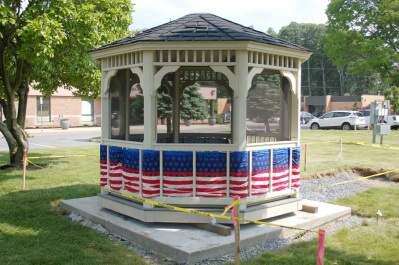 Decorated for the holiday A gazebo placed on the Whitehall Township municipal grounds, MacArthur Road, is decorated with a red, white and blue bunting for the Memorial Day weekend. The gazebo will be a part of the township's proposed veterans memorial plaza, which will be dedicated Memorial Day 2017. A flag pole with a yard arm for pennants noting the five military branches was to be erected for a