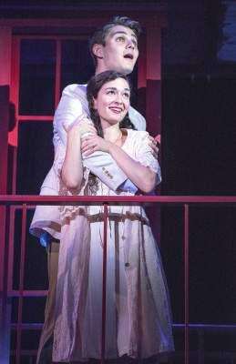 “West Side” explodes on the stage from the controlled frenzy of the production number, “Jet Song,” sung with biting intensity by Nathan Madden (Riff) and The Jets, seguing into the jittery anticipation of “Something’s Coming,” sung with pure exuberance by Austin Colby (Tony), morphing into the extended dance sequences of Mambo, Cha-Cha and more, and culminating in “Maria,” sung by Colby to MaryJoanna Grisso (Maria).