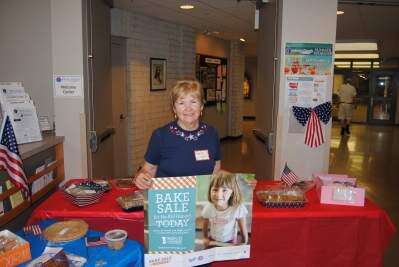 press photos by chris dryfoosAsbury United Methodist Church holds a yard and bake sale June 18 to benefit a Vacation Bible School in Oklahoma, where impoverished Cherokee children are taught how to bake bread and learn about God. All of the event's proceeds will directly benefit the Vacation Bible School. ABOVE: Judy Kemerer, of Schnecksville, stands proudly amongst many baked goods. Kemerer was