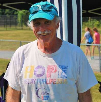 PRESS PHOTO BY TINAMARIE MARTINEd Johnson, of Bath, takes a break during the American Cancer Society's Relay for Life, held Friday and Saturday at Whitehall High School's stadium. Johnson walked 56- miles during the fundraising event, logging a grand total of 226 laps around the track. See additional photos on page A13.
