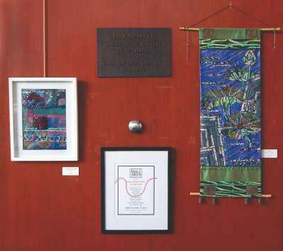 PRESS PHOTO BY ED COURRIERJean Thornburg Thobaben's “Composition No. 1” (paper, fiber art), left, and Marya's “Lotus Wall Hanging” (fabric collage), right, were in the Bethlehem Fine Arts Commission “Expression in Fiber Art” exhibit, Rotunda Gallery, Bethlehem City Hall, which concluded June 29, and included textile and mixed-media works by Alison Bessesdotter, Ted Hallman, Peggy Hobbs, Maryann J. Copyright - &Copy; Ed Courrier