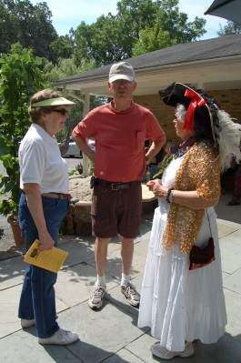 In addition to the assortment of trees, bushes, colorful flowers, and decorative pirate decorations, Isabella, a bronze-colored metal mannequin owned by Elsie, oversaw the garden tour.