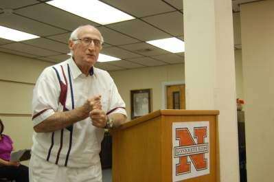 A seven-member Lou Wolf Field committee raised “thousands of dollars” not only for placement of Lou Wolf Field lettering on each 20-yard line facing home and away seats, a plaque to honor Wolf and Erdosy, but for academic scholarships for NASD students. The amount raised and scholarship details are to be announced.