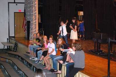Standing on stage, Catasauqua Middle School students Aiden Heil, left, and Hanna Kurczeski, bring down the house while performing Journey's rock classic song, “Don't Stop Believin,'” during the CMS fifth- and sixth-grade talent show. Seated at the front of the stage are CMS Student Forum members. The yearly talent show, held this year June 3, offers students the opportunity to perform in front of