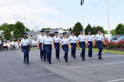 PRESS PHOTOS BY JENNIFER BODISCHThis unique all-female drill team from Dieruff High School, Allentown, recently gave a rousing 15-minute performance in the parking lot at Country Meadows retirement community. This is one of several drill teams and color guards excelling in national competitions from Dieruff's Air Force Junior ROTC program under the direction of Maj. Timothy Page.