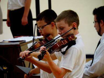 PRESS PHOTOS BY LINDA DEIBERTBefore the end of the school year, Northwestern Elementary band and chorus members, under the direction of Shawn Fies, displayed their talents to family and friends. Carson Mesics and Hudson Wertman play the violin for “I Am But a Small Voice.”