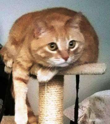When Pursell responded to a radio dispatch of an “injured cat” in the backyard of Michael Leinert’s home at 1112 American St., the orange tabby cat appeared to be injured and hissed at him. He reported he saw signs of mange and observed an exaggerated limp and a blood trail leading to a grill area where the feline had moved. There had been no reports of a missing domestic cat, and it wore no collar, he said.