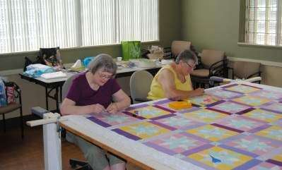 Lehigh Valley Active Life, Allentown, promotes mental, physical and social fitness for senior citizens. LVAL offers a wide range of programs including painting, history, dancing, language and cooking. Joann Kean of Trexlertown and Lisa Cole of Bethlehem work on an eight-point star quilt.press photo by chris dryfoos