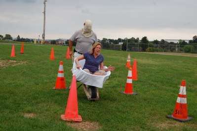 PRESS PHOTO BY SUSAN BRYANTKathy Hermany with Lynn Township gives directions to Tony Werley with Weisenberg Township during the Teamwork Works game at the Lehigh County Association of Township Officials games and equipment rodeo Aug. 5 at the Schnecksville Fire Company.