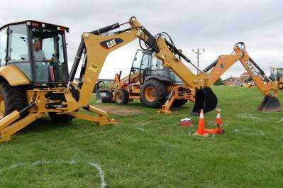 PRESS PHOTOS BY SUSAN BRYANTUpper Macungie employee Rich Bachert III attempts to drop a water bottle into a small cooler during the Thirsty Backhoe Operator game at the Lehigh County Association Township Officials games and equipment rodeo Aug. 5 at the Schnecksville Fire Company. Bachert won the Wheeled Loader Basketball game at the rodeo.