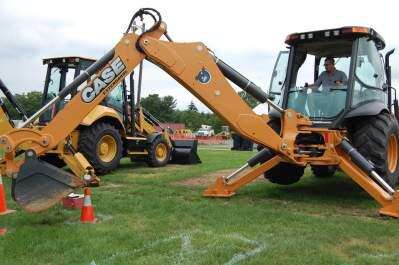 PRESS PHOTO BY SUSAN BRYANTNorth Whitehall Township employee Brian Neas tries his skill at the Thirsty Backhoe Operator game Aug. 5 at the Lehigh County Association of Township Officials games and equipment rodeo at the Schnecksville Fire Company. Neas with partner Ryan Eisenhard, also of North Whitehall, won the Teamwork Works game. Neas also won the Load-and-Go, Two-Person Relay with partner