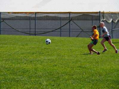 Before the end of the school year, fifth graders from Weisenberg and Northwestern elementary schools met at the rec fields for a day of fun and games. Northwestern Elementary student Angelina Klein and Fallyn Oertner from Weisenberg play soccer.PRESS PHOTOS BY LINDA DEIBERT