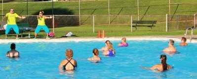 PRESS PHOTOS BY TINAMARIE MARTINPedro and Tessy Ayala, of Easton, lead an aqua Zumba class last Monday at Coplay's Parkway Pool. According to Steve Burker, head of recreation and parks for the borough, the summer class has been held for more than three years, averaging 40 to 60 people each week.