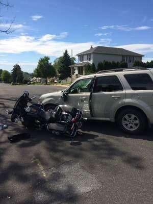 PRESS PHOTOS BY KYLE MERTLEmergency crews were dispatched to the intersection of South Potomac Street and East Tioga Street for an accident involving a motorcycle around 3:15 p.m. Aug. 17. ABOVE: Emergency personnel find a motorcycle and sports utility vehicle had collided.