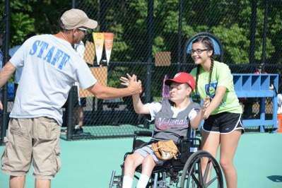 PRESS PHOTO BY LOU WHEELANDThe Miracle League of the Lehigh Valley had its 10th anniversary picnic Aug. 20 at Fowler Field, in Jaindl Family Park, Heidelberg Township. Volunteer Jerry Brown high-fives Andrew Miller as he reaches home with the help of Jenny Delorimier, a new volunteer at the Miracle League baseball game. See additional photos on page A7