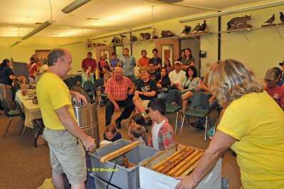 PRESS PHOTO COURTESY WILLIAM MONDJACKKutztown beekeeper and past Lehigh Valley Beekeeper Association President Steve Finke of Meadow View Beekeeping LLC shows the young and young-at-heart the extraction of honey from hive frames during a Honey Bee Day event. Copyright - Bill Mondjack