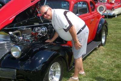 PRESS PHOTOS BY AL RECKERRichie Boyz, of Moore Township, looks over the eight-cylinder chrome engine of his 1939 Chevrolet during the Wheels of Faith car show and craft fair, held Aug. 20 at Faith Lutheran Church, MacArthur Road, Whitehall.