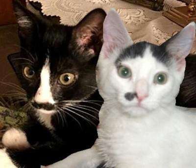 Rocket and Sprocket are 4-month-old kittens who are spayed and neutered, up-to-date on shots and negative for feline leukemia. Rocket is a black/white tuxedo outgoing female. Sprocket is white, medium-long hair male with black spots. He is shy and relies on Rocket for assurance. They would like to be adopted together.