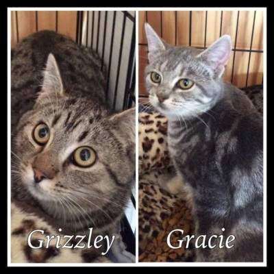 Grizzley and Gracie, 5 months, are a very sweet and loving brother and sister duo. They will curl in your lap and purr themselves to sleep. Grizzley is a big boy and Gracie is petite. They are very bonded and must be adopted together. They are healthy, neutered and spayed, vaccinated and negative for feline leukemia.