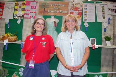 PRESS PHOTO BY PAUL WILLISTEINBonnie Wachter, left, volunteer, Lehigh County 4-H, of Allentown, and Jo Lee A. Muller, 4-H volunteer, of Orefield, Upper Macungie Township, on opening day, Aug. 30, at “4-H Grows from Country Roots,” one of the displays in the Agri-Plex at the Great Allentown Fair. Muller, who is on the Lehigh County 4-H Development Fund Board, is also involved with the county Equine