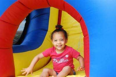 PRESS PHOTO BY ASHLEIGH STRANGEAva Grace, 2- , is clearly having fun in the bouncy house at the back-to-school carnival sponsored Sept. 17 by the Parkland High School Student Council. The fun activities took place in the high school cafeteria.