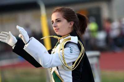 The Emmaus High School Band performed during the Hornets vs. Panthers football game Sept. 16. Emmaus won, beating Pocono Mountain West 62-6. RIGHT: Drum Major Laura Miller leads the band.PRESS PHOTOS BY NANCY SCHOLZ