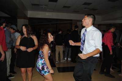 PRESS PHOTO BY SUSAN BRYANT Lindsey Ilgenfritz of Orefield watches fellow classmates off to the left while Ilana Toth of New Tripoli and Jules Mittl dance to the music Oct. 1 at the homecoming dance in the cafe at Northwestern Lehigh High School.