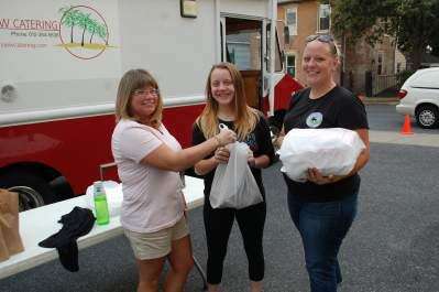 Drive-thru chicken Tweet Published October 06. 2016 12:00AM by The Press PRESS PHOTOS BY MARK RECCEKKorin Moyer, middle, and her mother, Kelly, of Catasauqua, receive chicken dinners from Kim Smith, volunteer, during St. Mary's Church's takeout chicken dinner fundraiser Sept. 9.