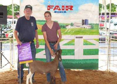 PRESS PHOTO BY C. RICHARD CHARTRANDThis Grand Champion market goat was raised by Olivia Geiger of Schnecksville. It was sold to Victor Smith for $400 Sept. 3 at the 4-H Grand Champion auction at The 164th Great Allentown Fair.