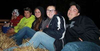 PRESS PHOTOS BY TINAMARIE MARTINTop: Bailey Fisher, of Whitehall; Carly O'Neil, of Kutztown; Shelby Tully, of Northampton; and Domenic Cenci, of Whitehall, enjoy a night of fright and fun on a haunted hayride Oct. 1 at Whitehall Parkway, South Church Street. Left and above: These spooky sights are part of the Halloween-themed event, held 7-11 p.m. every Friday and Saturday through October and