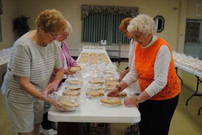 PRESS PHOTOS BY SUSAN BRYANTNOVA Ladies Auxiliary members Sandy Miller, LaRue Guth, Carol Kotch and Agnes Smith bag freshly baked shoofly pies for customers to pickup Sept. 26 at the Northern Valley Emergency Medical Services headquarters in Ormrod.