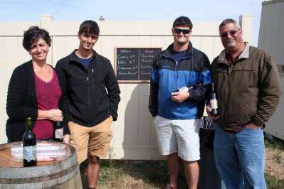 PRESS PHOTOS BY DEBRA PALMIERI(left) Dana and (right) Richard Woolley, owners of Weathered Vineyards, Carpet Road, Weisenberg Township, are joined by sons Jason and Andrew at the winery's second anniversary celebration Oct. 7, 8, and 9.