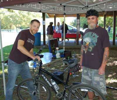 PRESS PHOTOS BY AL RECKERTheodore Fogle, of Coplay, has his bicycle undergo a brief inspection Sept. 25 by Bob Takascs of Fitness Central, Schnecksville, during Whitehall Township's Stroll on the Parkway, held at Hokendauqua Park & Playground and along the Ironton Rail Trail. The event also included free flu shots, blood pressure testing and stands of several health care providers.