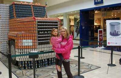 PRESS PHOTO BY AL RECKERBrittney Hess and her daughter, Khiylee, of Whitehall, enjoy the Mack truck replica made from canned goods at Lehigh Valley Mall's second annual CANstruction competition. Teams of architects, specifiers, engineers, designers, manufacturers, contractors and students joined together to design and build a piece for this year's theme, Lehigh Valley Heritage. The sculptures were