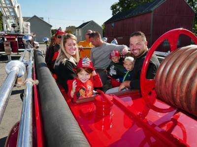 PRESS PHOTOS BY LOU WHEELANDFogelsville Fire Company had an open house for the community on Oct. 15 as part of its 100th anniversary celebration. On hand for the celebration was the recently rebuilt 1946 Buffalo pumper, Fogelsville's first new piece of apparatus. Taking a ride on the pumper are Kerri, Jade, Kaitlyn and Derrico Blaise; Max and Christian Boyer; and Fernando Molina and Fernando Jr.