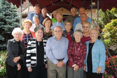 PRESS PHOTO BY SUSAN BRYANTParkland High School Class of 1951 graduates (front) Marian Mertz Chambers, Sandra Miller Lovett, Hubert Sell, Mary Ross Butz, Jean Newhard Gackenbach, (second row) Adele Yeager Snyder, Barbara Kuss Stabile, Geraldine Wotring Radeline, Elaine Breininger Savelli, (third row) Caroline Snyder Schleicher, Ralph Uff, Bill Klusaritz, (back) Curtis Schneck, Richard Smale,