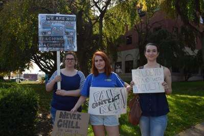 As students began to hear of the strike, many congregated together, made their own signs, many in favor of the faculty, and began parading around campus.