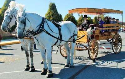 Heather Hazler, of Bethlehem Carriage Company, takes Abbey Dredge, Aoife Kearney, Kailyn Rothenberger, all of Whitehall, and Chase and Cole Bodnar, of Northampton, on a carriage ride during Whitehall Township's Fall Festival, held Saturday on the Whitehall High School campus.PRESS PHOTO BY TINAMARIE MARTIN
