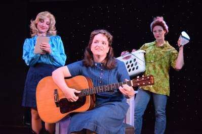 The characters in the musical are Angela (Erin Baltsar), Darleen (Stacey Yoder) and Sue Ellen (Stephanie Rubeo), who are costumed to look suspiciously similar to the stars of the album. All three characters want to “fly away” to a better place and a better life. They meet coincidentally on a Greyhound bus to Nashville, aka Music City, join forces, and get a gig singing as The Honky Tonk Angels at Hillbilly Heaven.