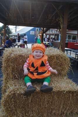 Picture perfect pumpkin Tweet Published November 03. 2016 12:00AM by The Press PRESS PHOTO BY SUSAN BRYANTWilliam Falcone, of Lower Macungie, dressed in his pumpkin suit, sits comfortably on bales of hay at Boo at the Zoo Oct. 30 at the Lehigh Valley Zoo, Schnecksville.